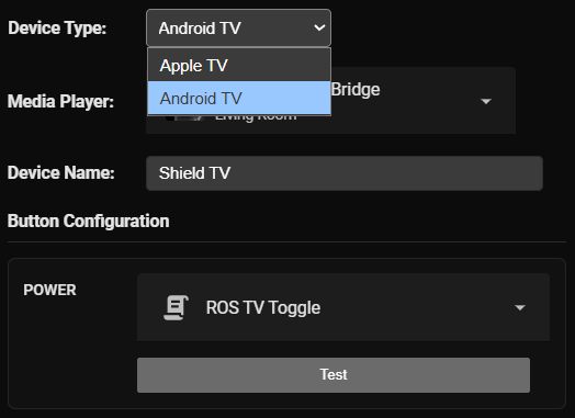 Adding a simple dropdown selector to the Astrion that replaces the Power Toggle on the TV ROS Card is the solution you need to implement. Also allowing *.button entities to be directly mapped to the TV ROS card hardware buttons would help.