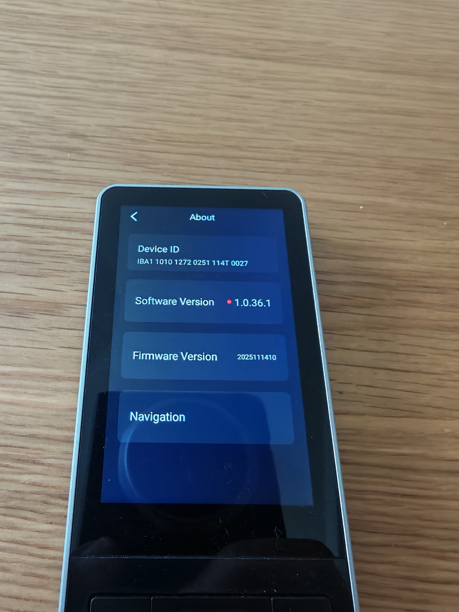 Current firmware version shown in Settings