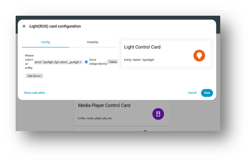 - Dashboard → Edit → Add Card → Custom: RosCard → Bind entities