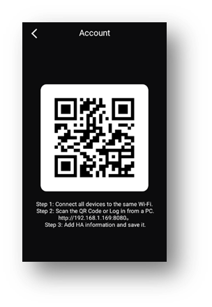 - QR Login (Recommended): Generate QR with HA URL + token → Remote: Settings → HA Login → Scan QR