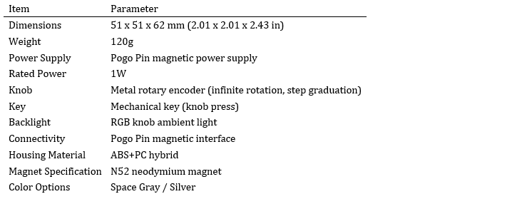 Infinite Possibility Scenario-Based Adjustment: Intelligently changes with scenario, such as controlling Photoshop brush size, adjusting AV system volume or screen brightness; the knob itself supports pressing, which can be defined as mute, switch, or mode toggle.
